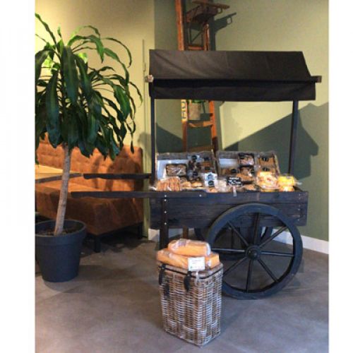 Onze superhandige marktkar is nu ook in het zwart verkrijgbaar. Wil je gelijk een nostalgische uitstraling en tevens een beschermlaagje voor buiten-gebruik dan is dit de ideale uitvoering.
